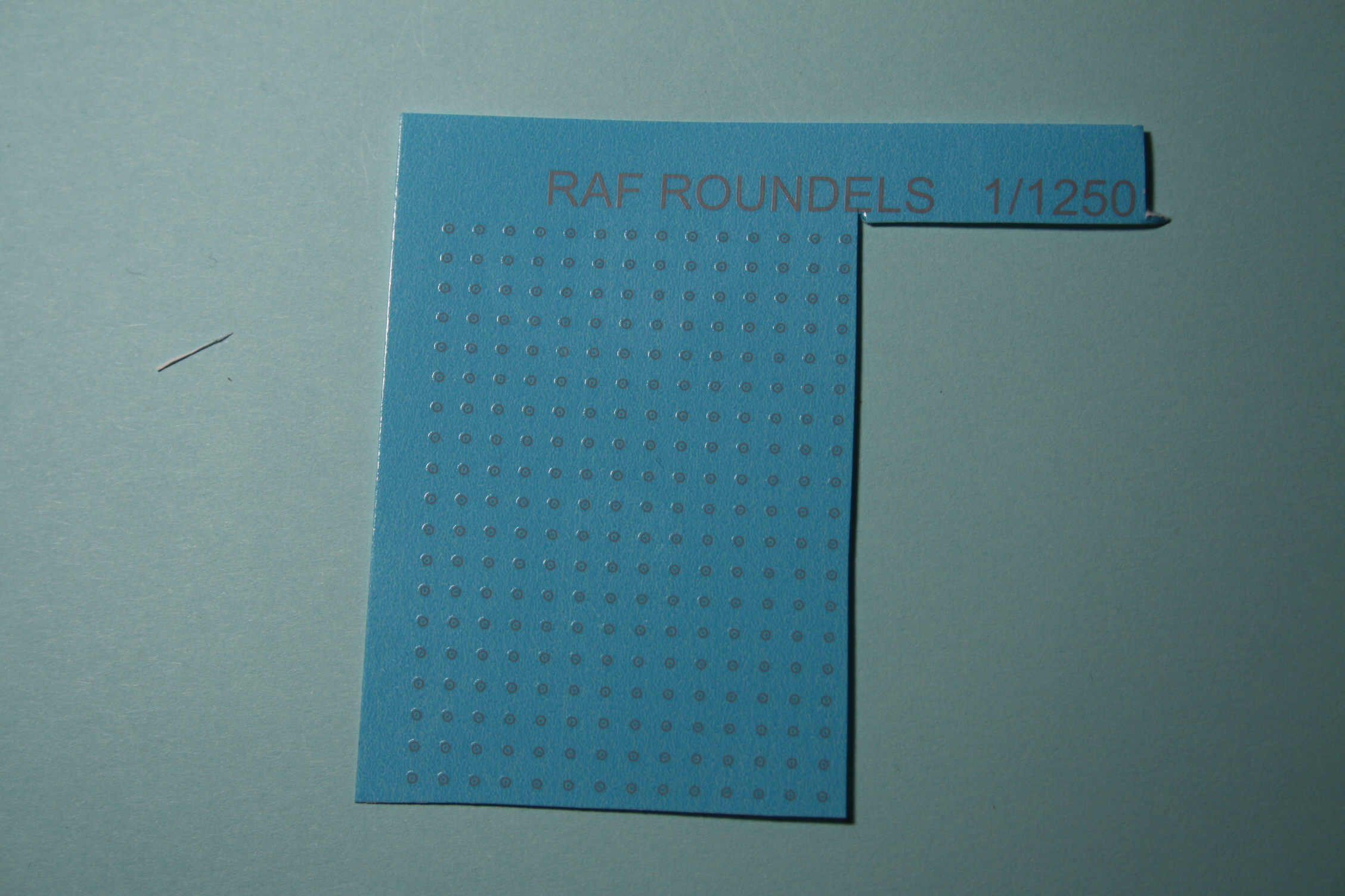 This is a set of RAF ghost low viz roundel decals waterslide transfers from CNCollectables for 1250/1200 scale. This is a quarter of an A6 sheet so there are approx 300. We also have USN decals in the same sizes and quantities. Thought they would be good to accompany our range of over 40 white metal aircraft. The photos show Nimrod and Grumman E1B mock ups. (which are part of the new releases in April) There is an instruction list included. They are very small so will require some patience. ref A47