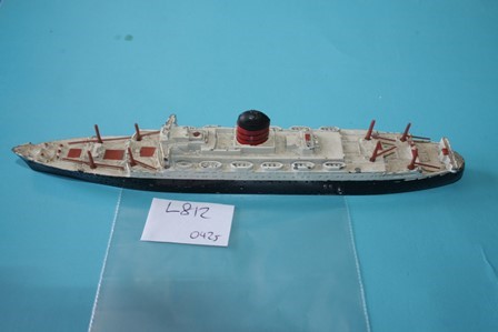 1st Series Cunard RMS Saxonia transatlantic liner. Made by Triang Minic ships between 1958 and 1964. In playworn condition and the deck is dusty. Most plastics present. Triang code M 708. Approx 6 inches long. 155mm. Our ref L812x