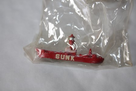 The Sunk lightship. These were supplied in boxes of a dozen assorted of the five examples of lightship. This model is still in its original plastic packaging and is untouched and unopened. There may be some storage wear.approx 1 inch in length. Our ref T9