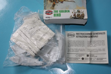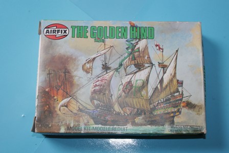 Here is an Airfix kit of the Golden Hind, the ship of the well known pirate Sir Francis Drake. It is one of the small sailing ships series.