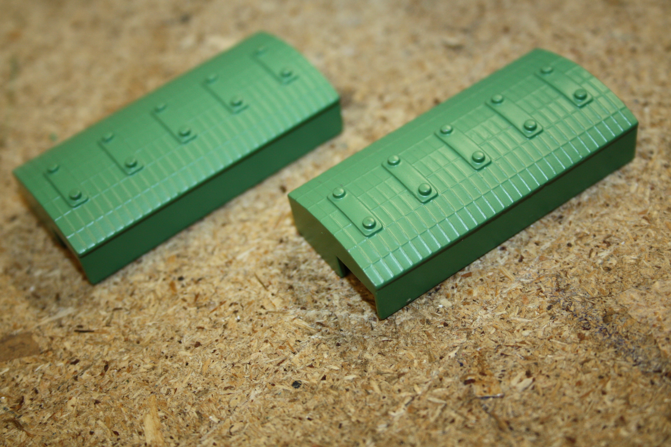 Here are some used harbour items from Triang Minic Ships. These are 2 green sheds, aka customs sheds. Shown in photo common green but the shade does vary. Photos are library photos and condition is very good. Size is 2 by 1 inches or 49 by 23mms Triang code M839. my ref ACCS 03G